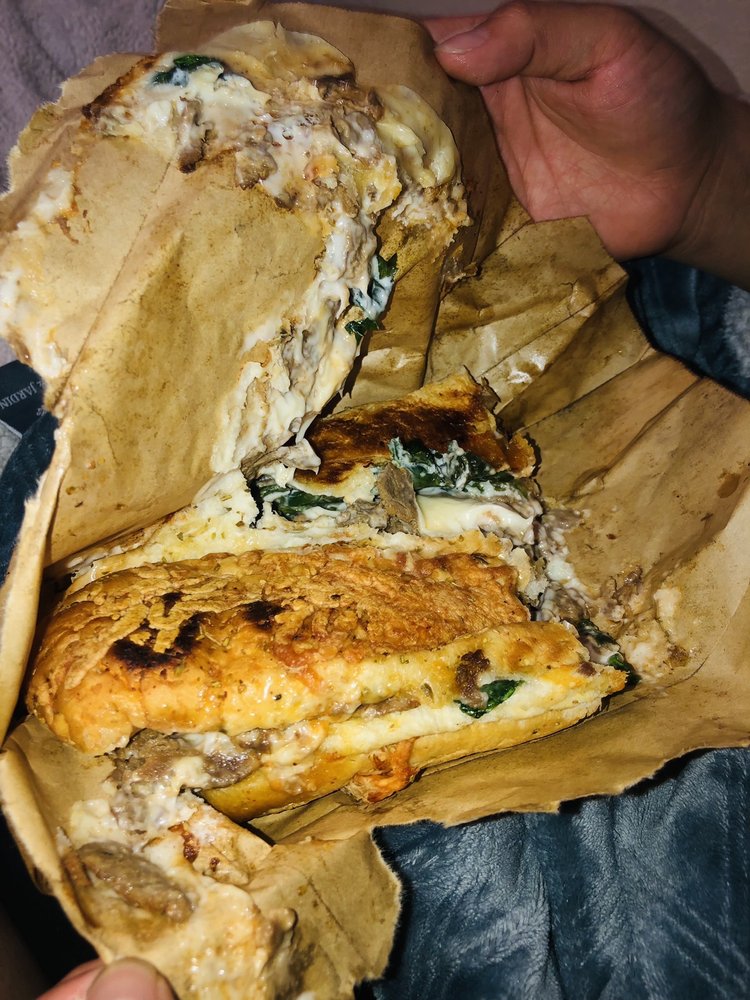 Make any morning glorious with shaved steak and eggs tucked into a blanket of melty American cheese on our flatbread. It's a savory breakfast sensation to start any day right.
